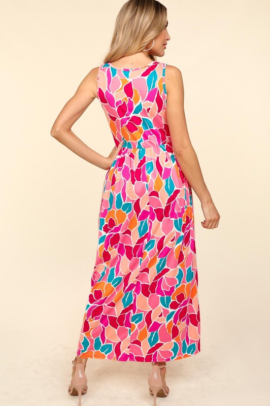 Abstract Floral Sleeveless Maxi Dress - Fuchsia