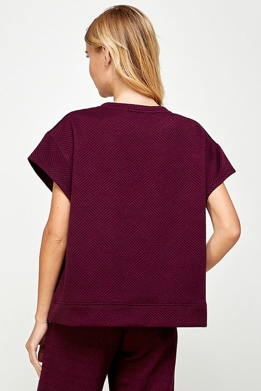 Solid V-Neck 3/4 Sleeve Pleat Back Top