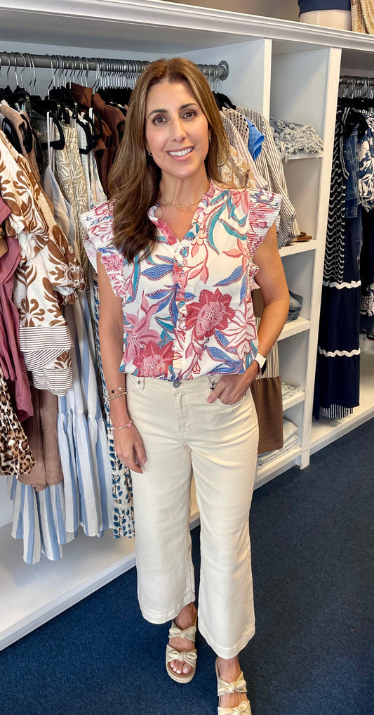 High Rise Wide Leg Crop Denim-Ecru