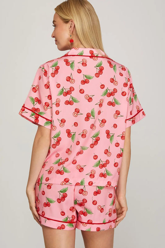 Cherry Print Shorts & Top Pajama Set-Pink