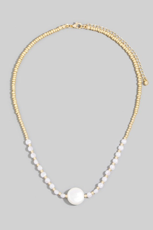 Round CZ & Enamel Bead Must Have Necklace-Wht