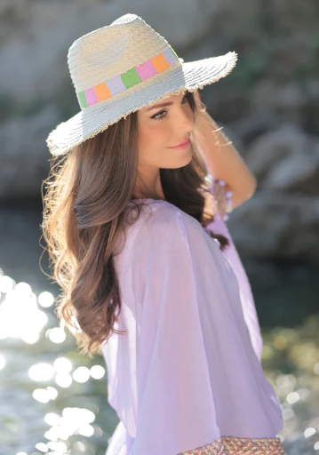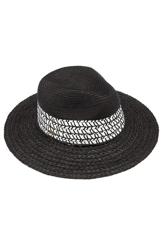 Aztec Band Straw Frayed Trim Hat-Yell/Org
