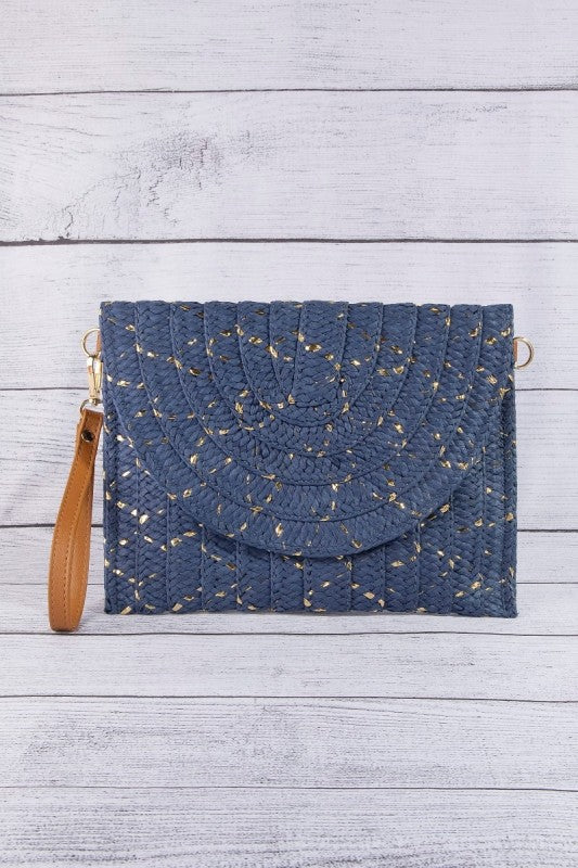 Gold Fleck Straw Envelope Clutch