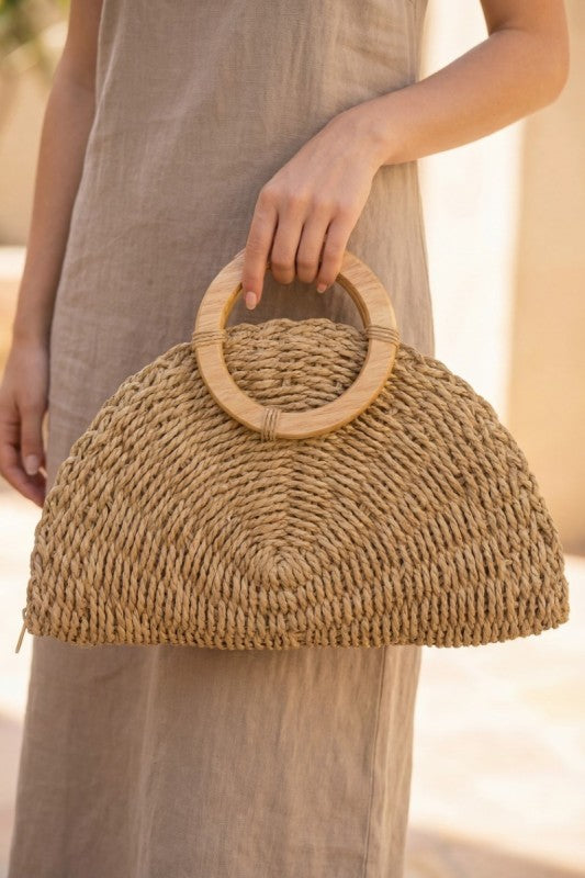 Half Moon Top Handle Straw Bag