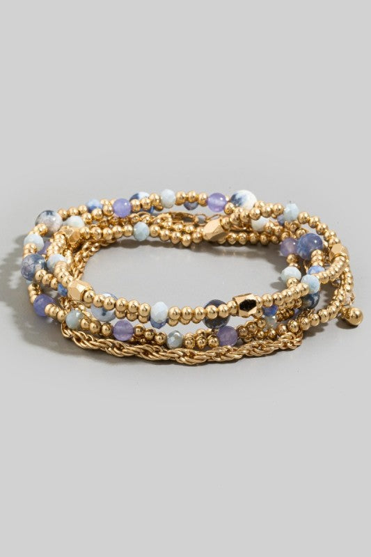 Round Stone & Metallic Beaded Bracelet Set