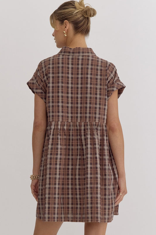 Abstract Print Smocked Top Split Neck Dress - Blue/Org