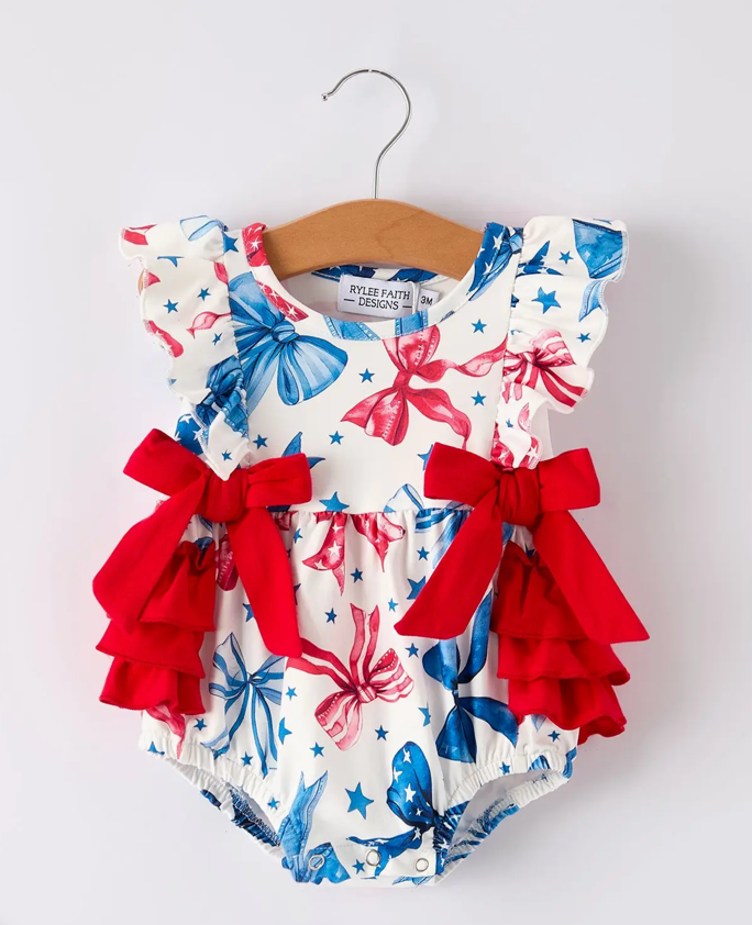 4th of July Bow Print Girls Romper