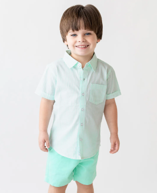 Aqua Gingham Button Up Collared Shirt by Ruffle Butts