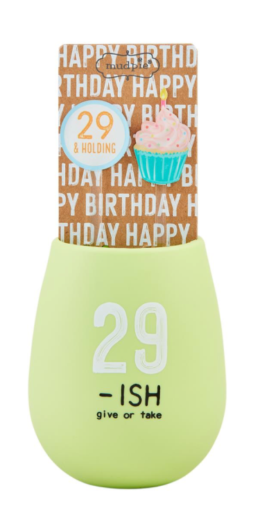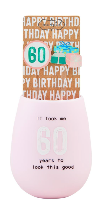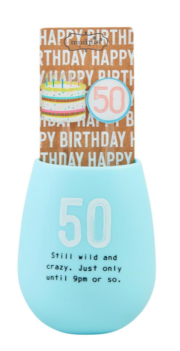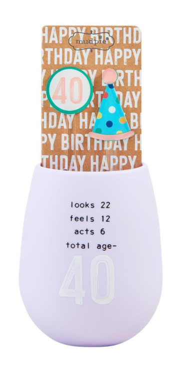 3-piece set. Stemless silicone wine glass. Comes with two acrylic birthday drink stirrers.