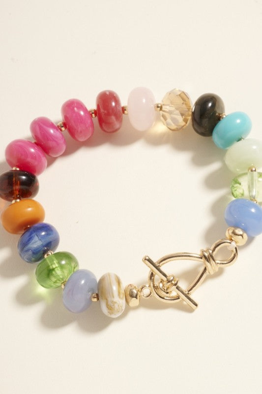A perfect blend of color and texture, this bracelet combines smooth resin