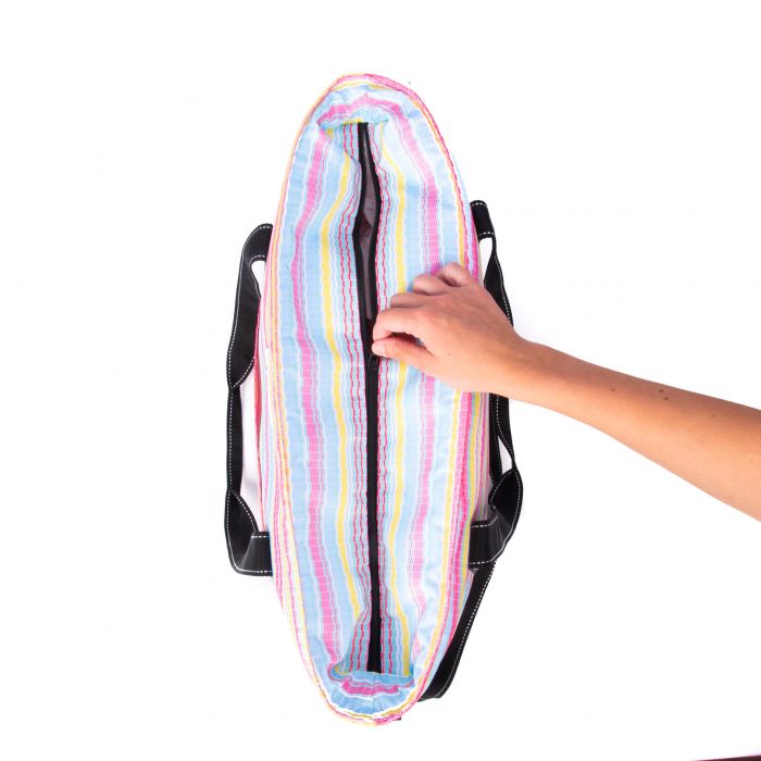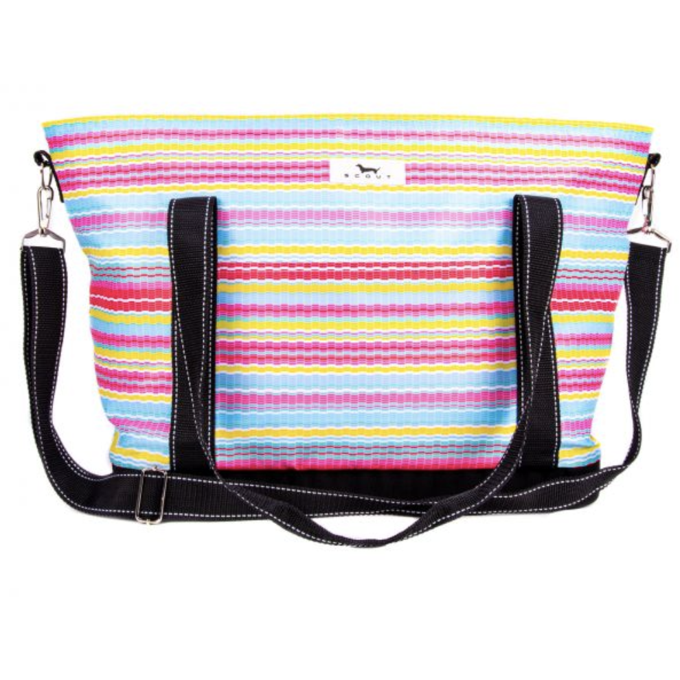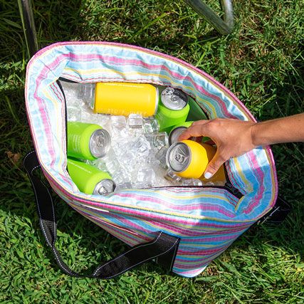 A large, soft cooler you can sling over your shoulder like a tote bag? Sign up here! The molded bottom stands up to any surface and it comes with a long, detachable strap for carrying versatility. Not just reserved for snacks and drinks either.