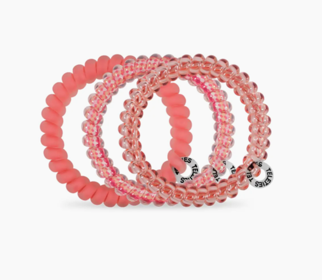 Dreamsicle Small Hair Ties in Orange and Pink offer a strong grip without damage, doubling as a chic wrist accessory when not in use. Your new favorite hair essentials all year round. Strong grip, no rip design for all-day hold Doubles as a stylish bracelet Durable and waterproof for all occasions Gentle on hair—prevents breakage, headaches, and creases Sold in packs of three.