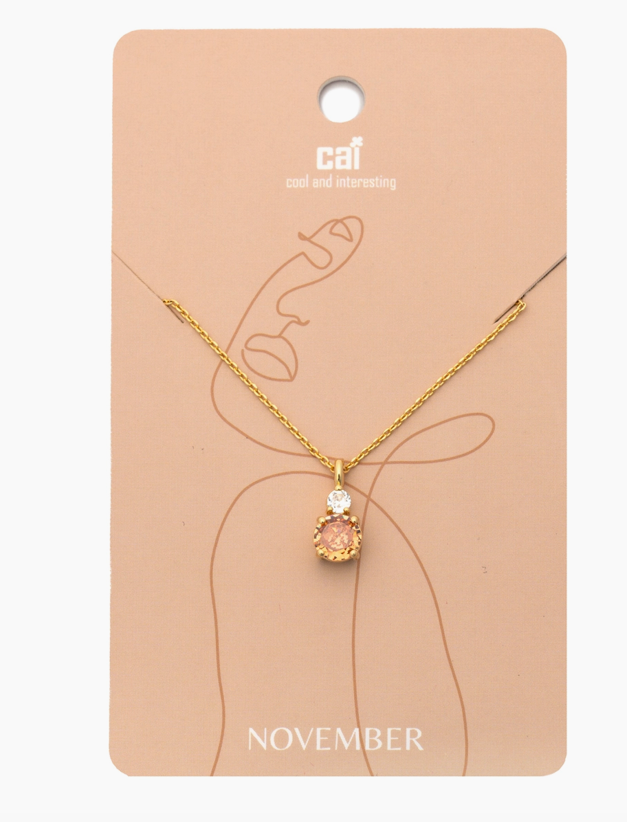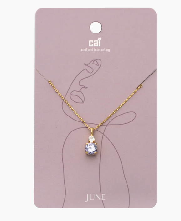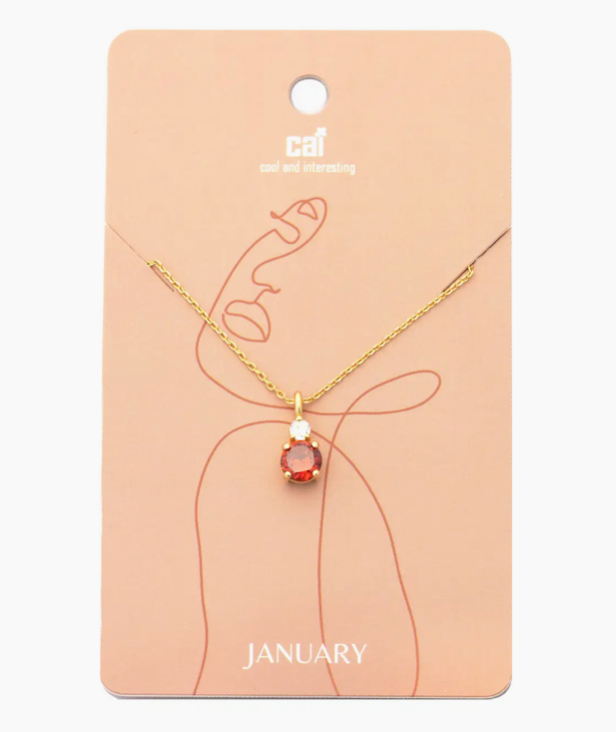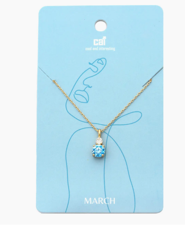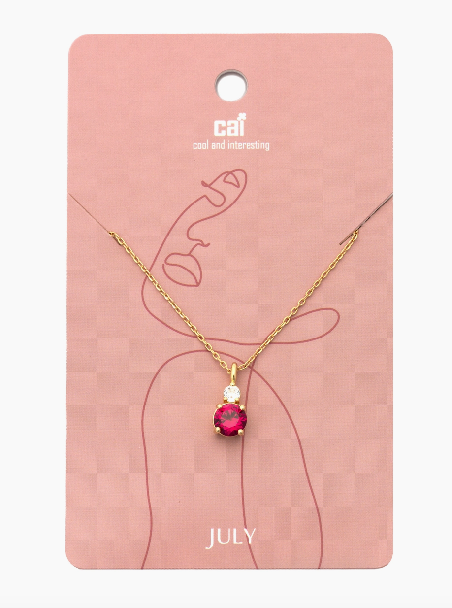 Approx. Size: Chain: 16/1" ext Stone: 1/4" Material: brass, synthetic stone Plating: 14k gold plated, brass Packaging: colored birthstone card