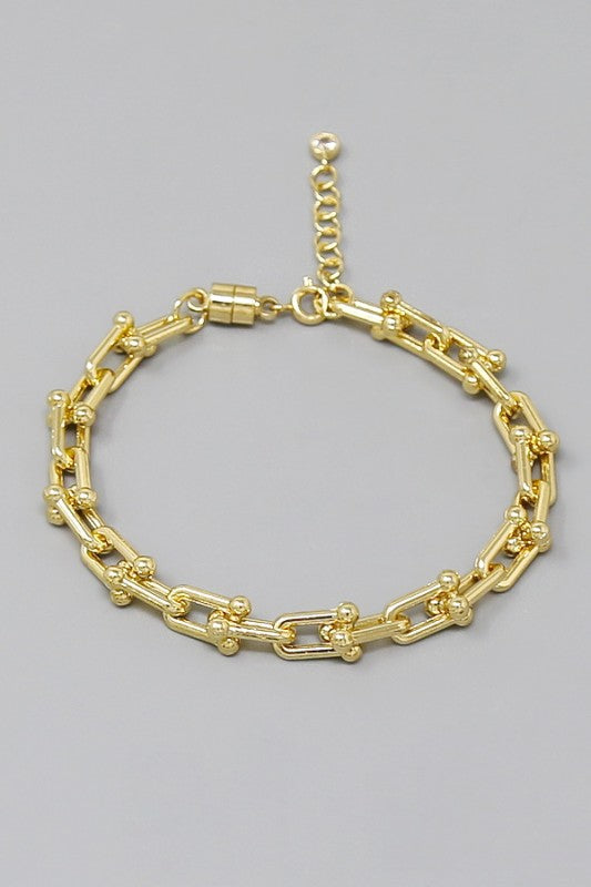 Gold Horse Bit Link Chain Bracelet