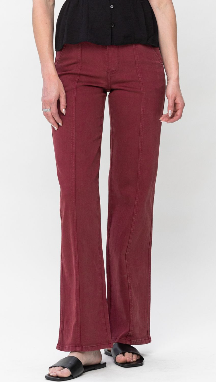 High Waist Dyed Front Seam Straight Denim - Burgundy
