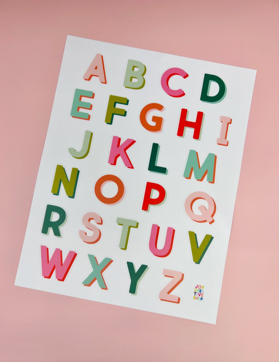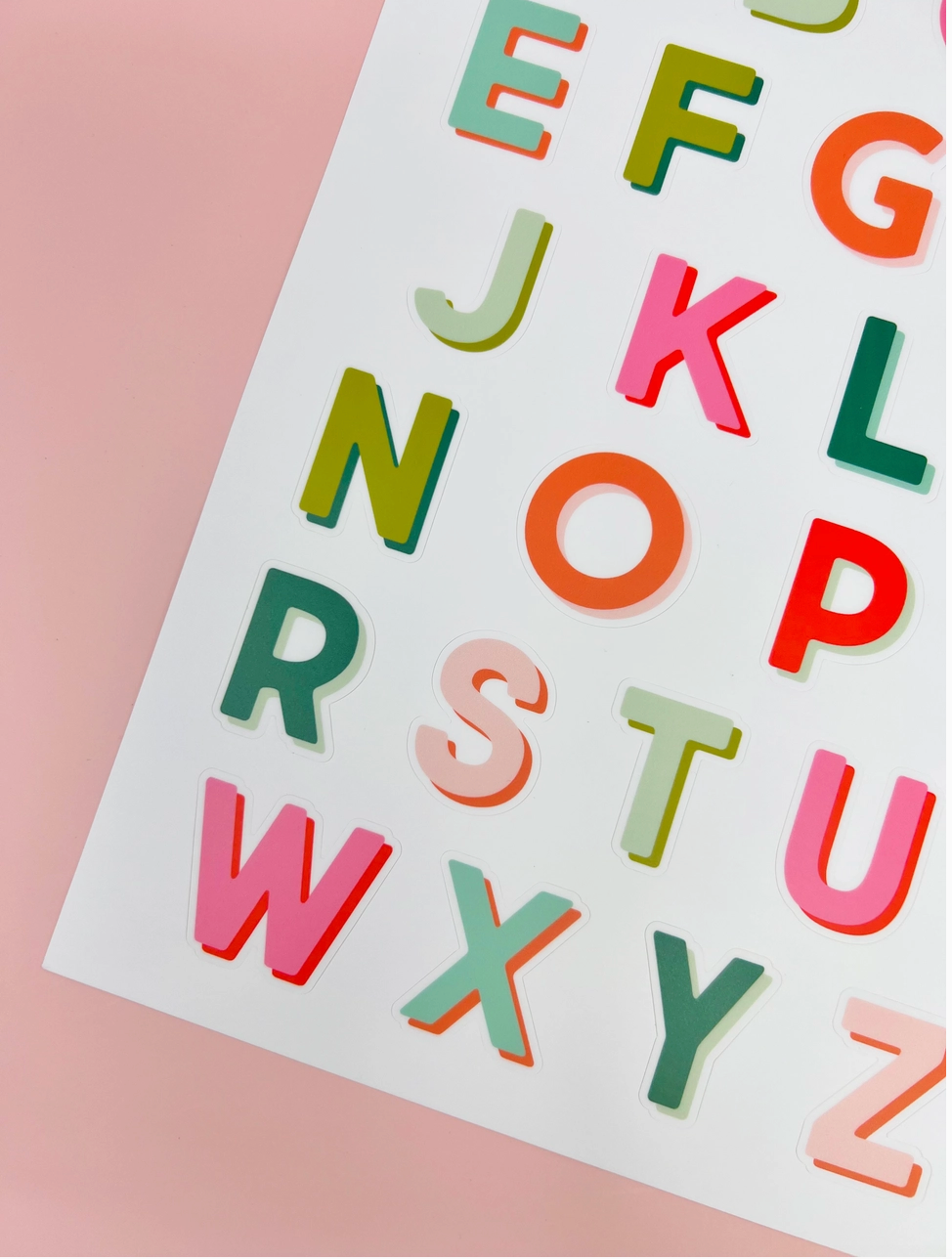 A THRU Z: Our NEW Alphabet Stickers are a fun way to create your word art! Add a colorful and personalized touch to your gift wrapping, notebook, water bottle, phone case, or laptop – endless possibilities!