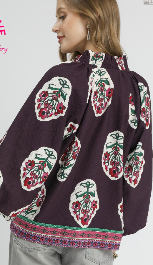 Large Spaced Floral 3/4 Sleeve Tunic Top