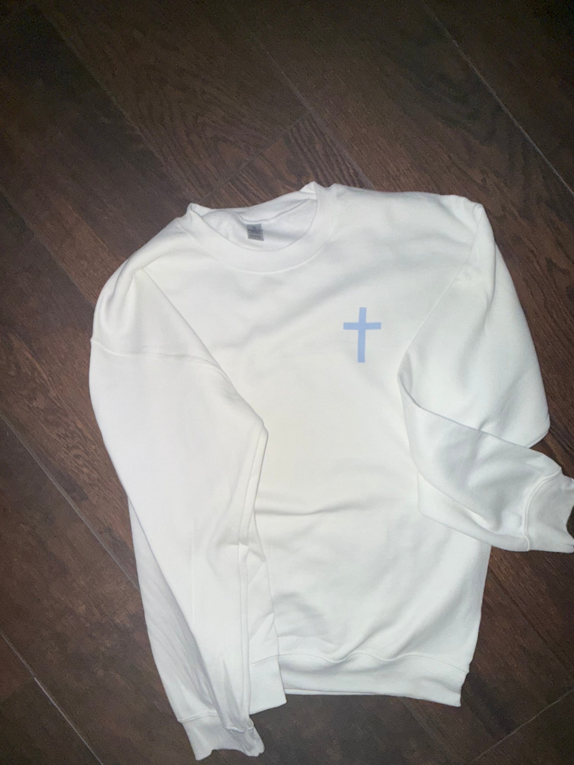 Left it in The Water Sweatshirt personalized with your church name and date. Perfect for a baptism gift.