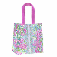 your favorite market shoppers are back and better than ever! featuring sturdy handles, gold hardware, and of course, a vibrant lilly pattern, they are a lilly-lover's dream carry-all! whether packing up supplies for a road trip or loading up on essentials at the grocery, you'll reach for this cheerful go-to again and again.