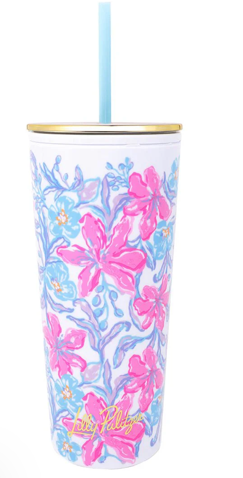 Stay hydrated while you sip from a stylish lilly cup! take that iced coffee to go, or tote your iced tea to the pool.