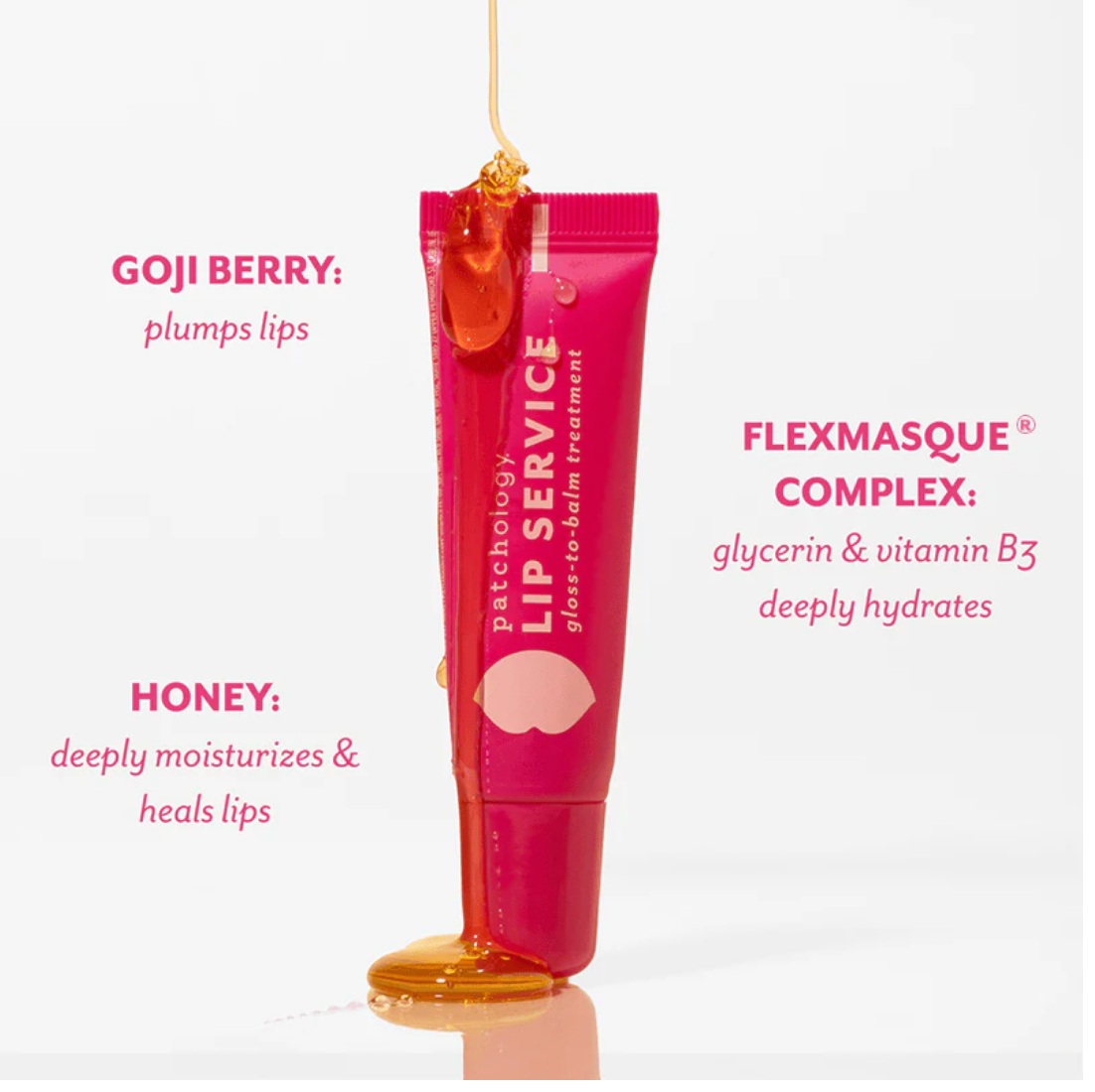 Your lips + Lip Service Gloss-to-Balm Treatment = a perfect match. Formulated with hyaluronic acid, aloe and honey for a cushion of hydration, this unique lip treatment locks the good stuff in for ultimate softness. Once slicked on, this gloss slowly melts into a soothing treatment balm to nourish, condition, and protect delicate skin against dryness. And the treatment layer provides two levels of protection; a physical barrier, plus an actives barrier rich with antioxidants and pro-vitamins for continued protection. It’s bound to be love at first swipe.