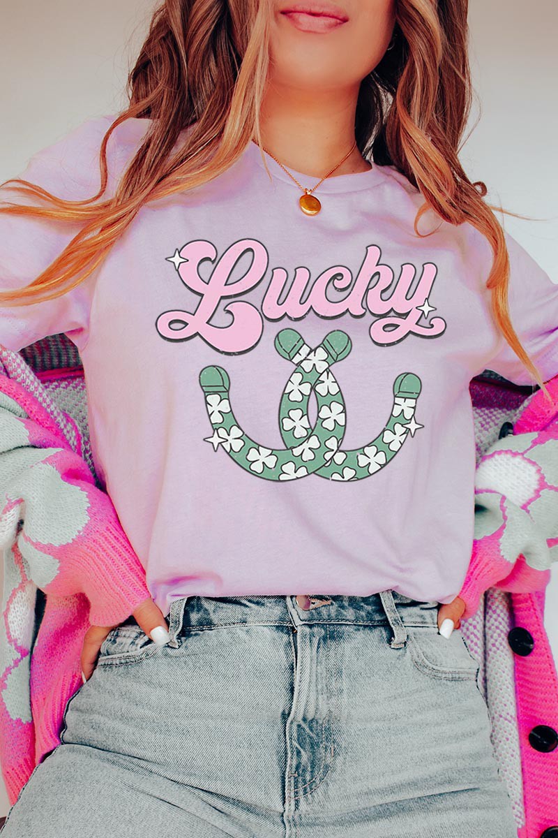 Lucky Clover Horseshoe Graphic T-Shirt-Lilac