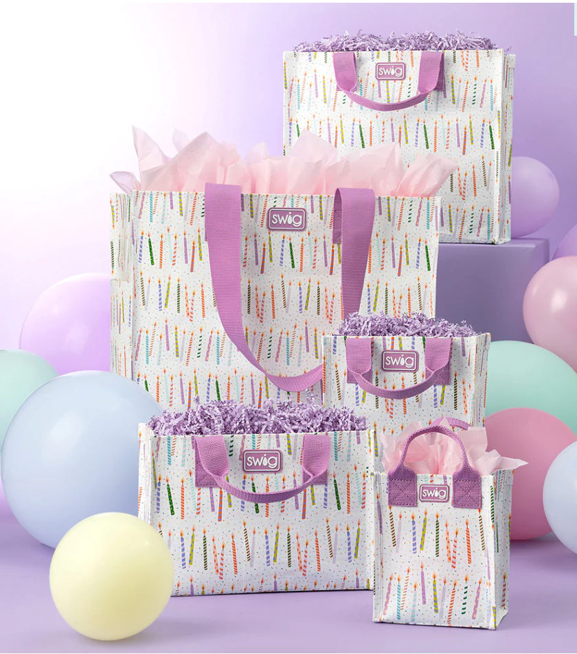 Swig Life's Reusable Bags are perfect for all of life's celebrations; birthdays, weddings, and holiday parties, and are a go-to favorite for grocery shopping! This reusable bag is made for toting gifts in one quick and easy trip. Its extra-large size is great to reuse for farmer's markets and weekend trips. Features two deep side pockets for grab-and-go essentials.