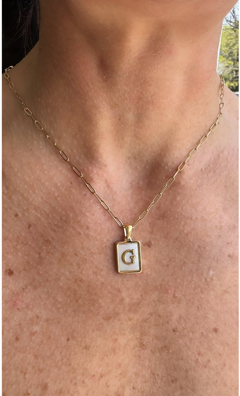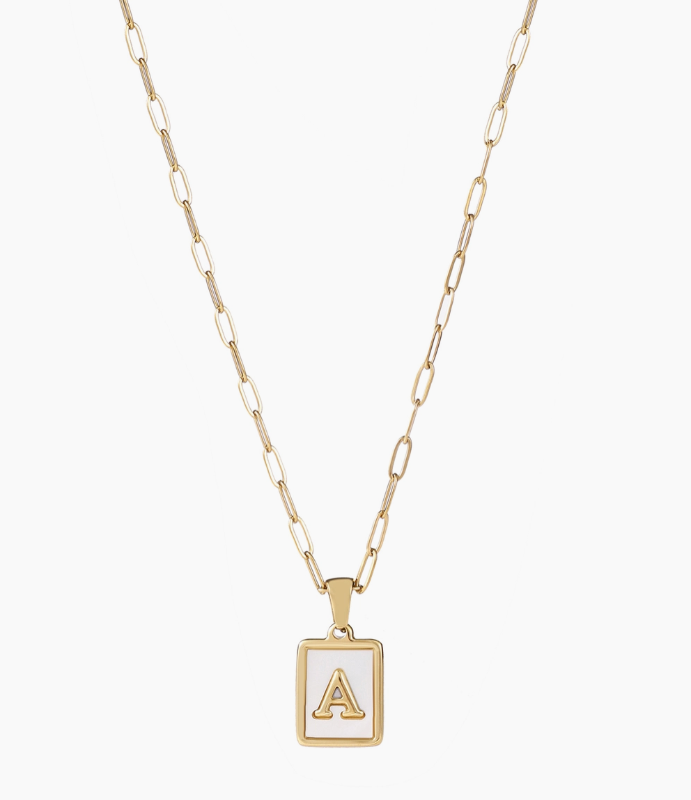 Material: 18k gold plated stainless steel Length: 16" + 3" Pendant: Shell pendant style Chain: Mini Paperclip chain with 3" extender