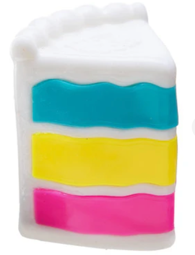 Characteristics: Single-piece dough-filled squishy toy shaped like a slice of cake. Slowly returns to shape after squeezing. Ideal for fidgeting, stress relief, and tactile sensory play.