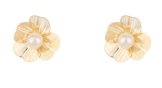 Gold Flower with Pearl Sterling Silver Post Hypoallergenic Earring