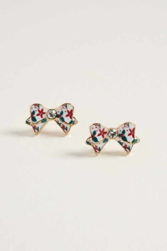 Designed with a holiday ribbon motif and rhinestone accents, these earrings