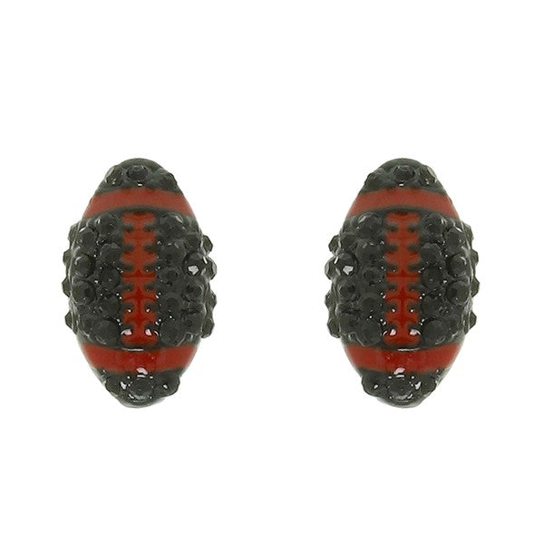 GAMEDAY TWO-TONE RHINESTONE PAVE FOOTBALL STUD EARRINGS HEIGHT: 0.5" WIDTH: 0.25"