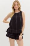 Solid Sleeveless Contrast Vertical Stitch Top