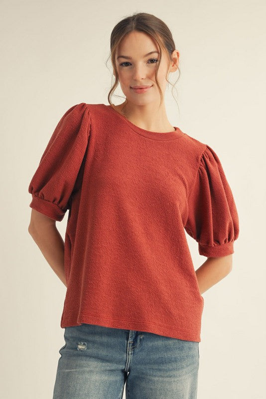 Solid Textured Puff Sleeve Top