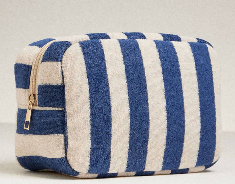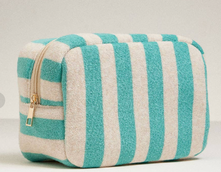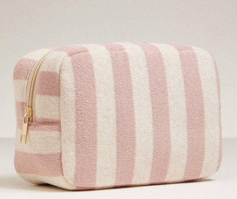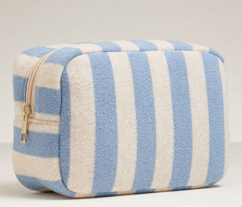 This striped pattern cosmetic pouch is both stylish and practical. Measuring 8.5" x 5" x 3", it offers ample space for makeup, toiletries, or daily essentials. The secure zipper closure keeps items safe, while its compact design makes it perfect for travel or everyday use. A must-have accessory!