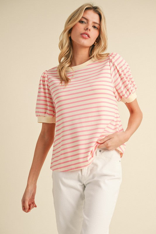Striped Puff Short Banded Sleeve Top