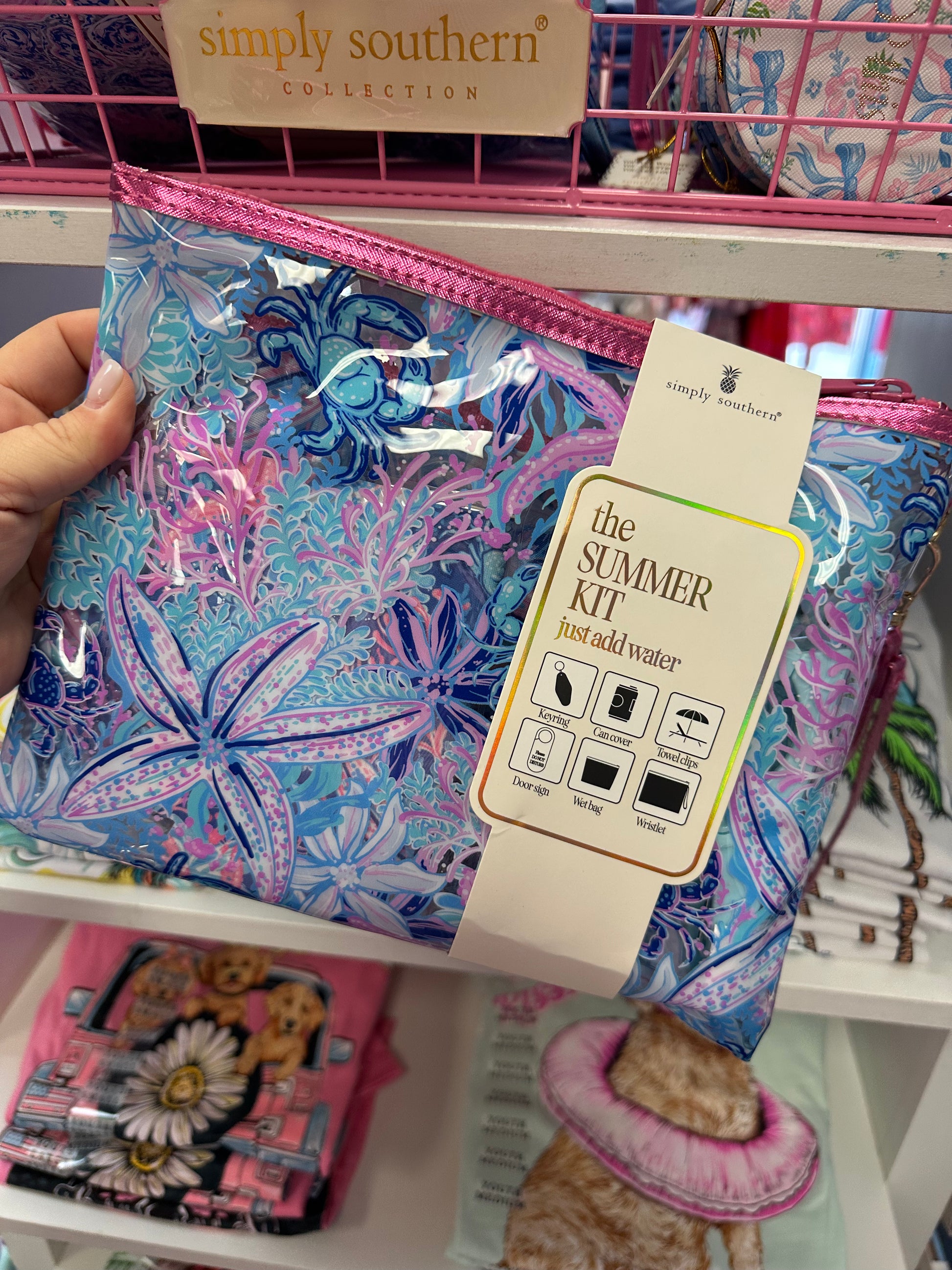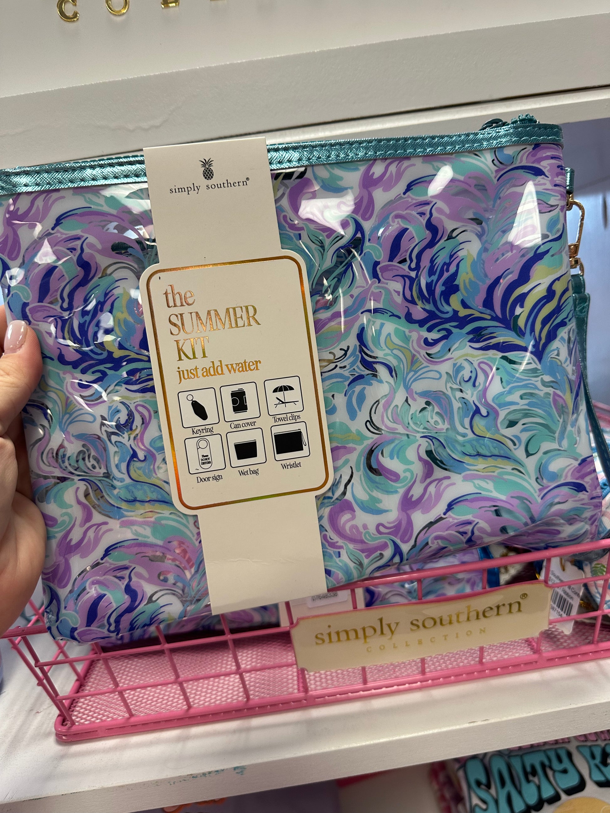 The summer kit includes: Keyring, Can cover, Towel clips, Door sign, Wet bag & Wristlet