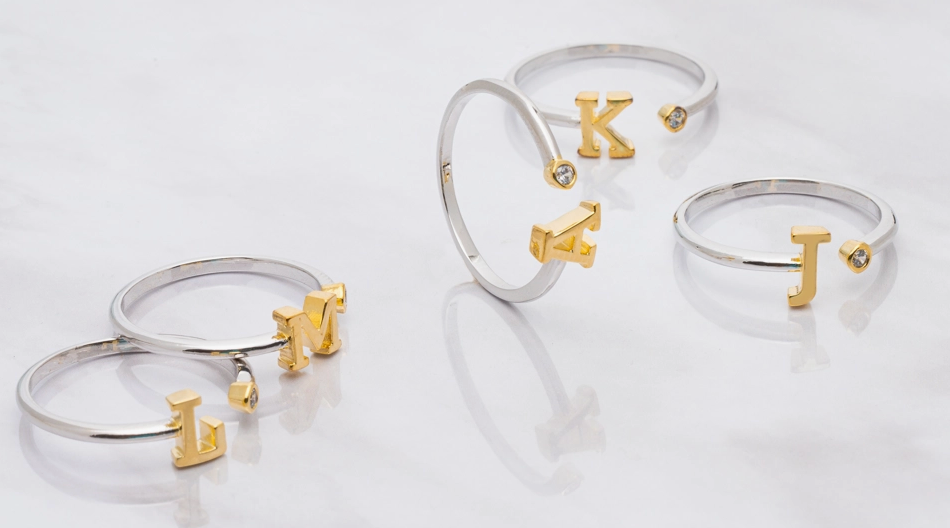 Two Tone Block CZ Initial Ring