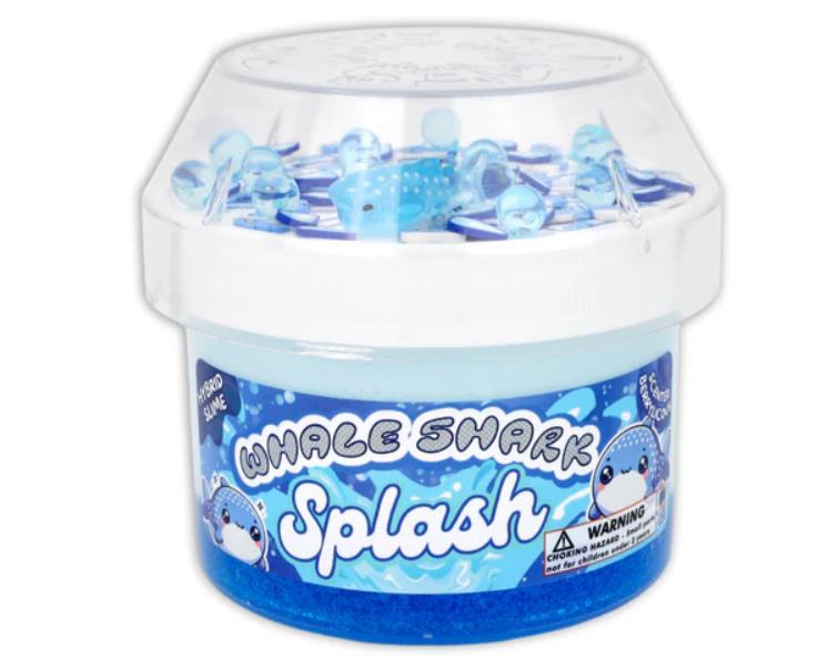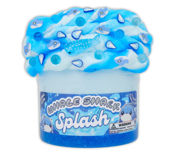 Get ready to make a splash with this Whale Shark Splash! This slime includes a vibrant deep blue clear slime bottom base, topped with soft light blue ice cream slime that mixes into a soft and stretchy hybrid textured Slime. Not only does it smell berrylicious, but it also comes with a cute whale shark charm, water bubble fimos, and boba beads!